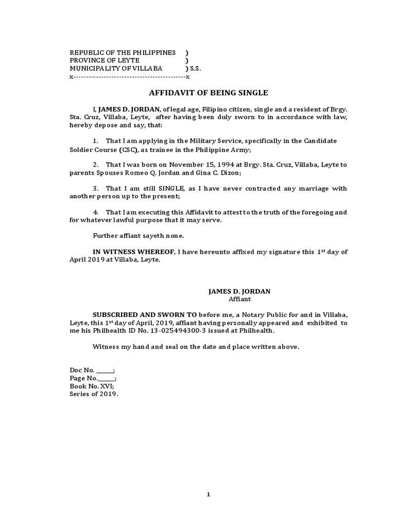 Affidavit Of Being Single Pdf Affidavit Comparative Law