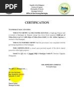 The barangay may levy taxes fees and charges. This certification is issued upon request of the interested party for her daughter JEANINE MAE. Land Title or Certification from Barangay Chairman COP for proof of livelihood for farmers.